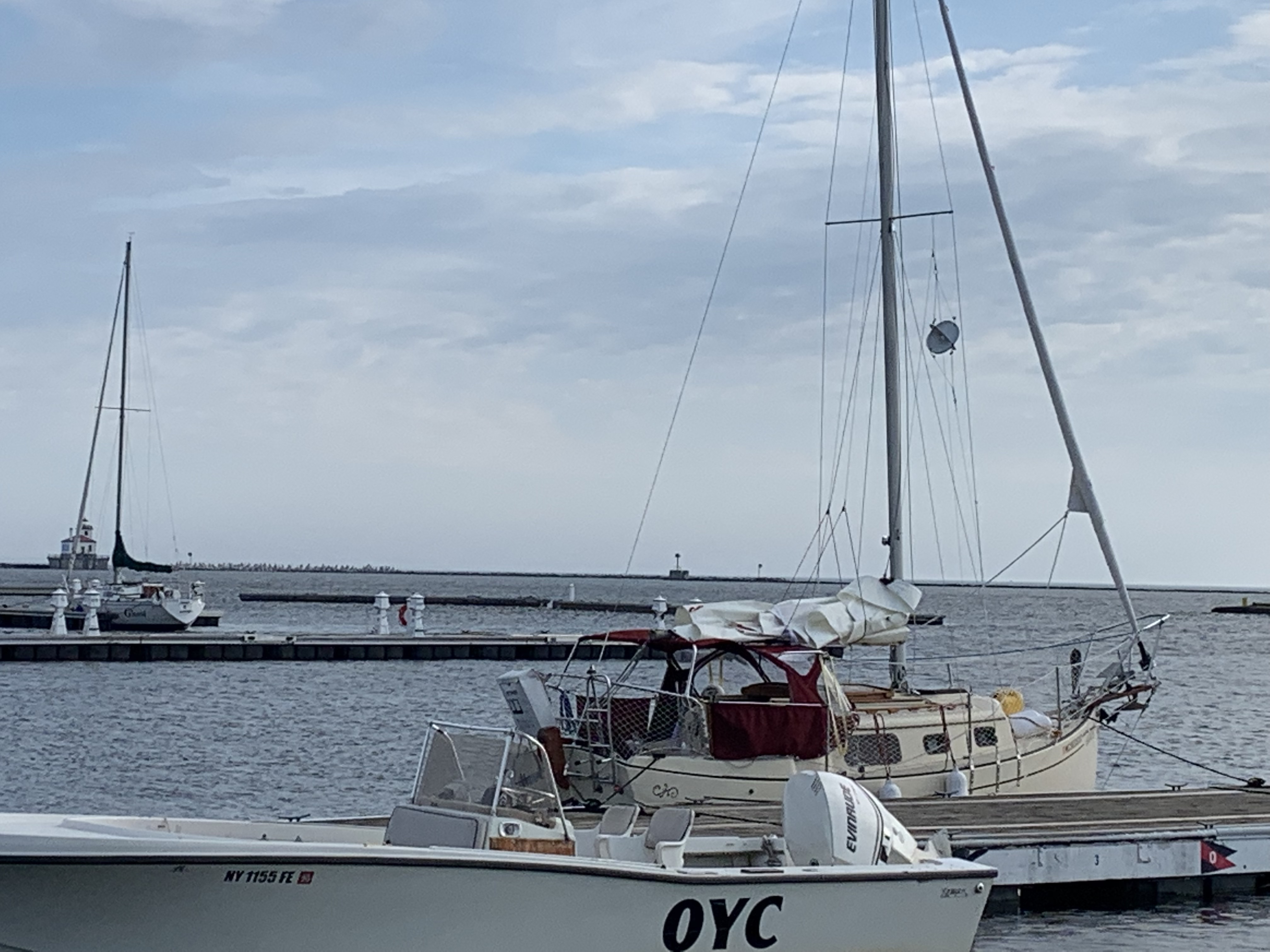 But alas the weather conditions did not continue into the afternoon. Again, I found myself cutting the sailing day short and set for Sodus Point before the weather hit. I made it into Kathrynns’ Marina just as the weather broke into sunshine and blue skies.