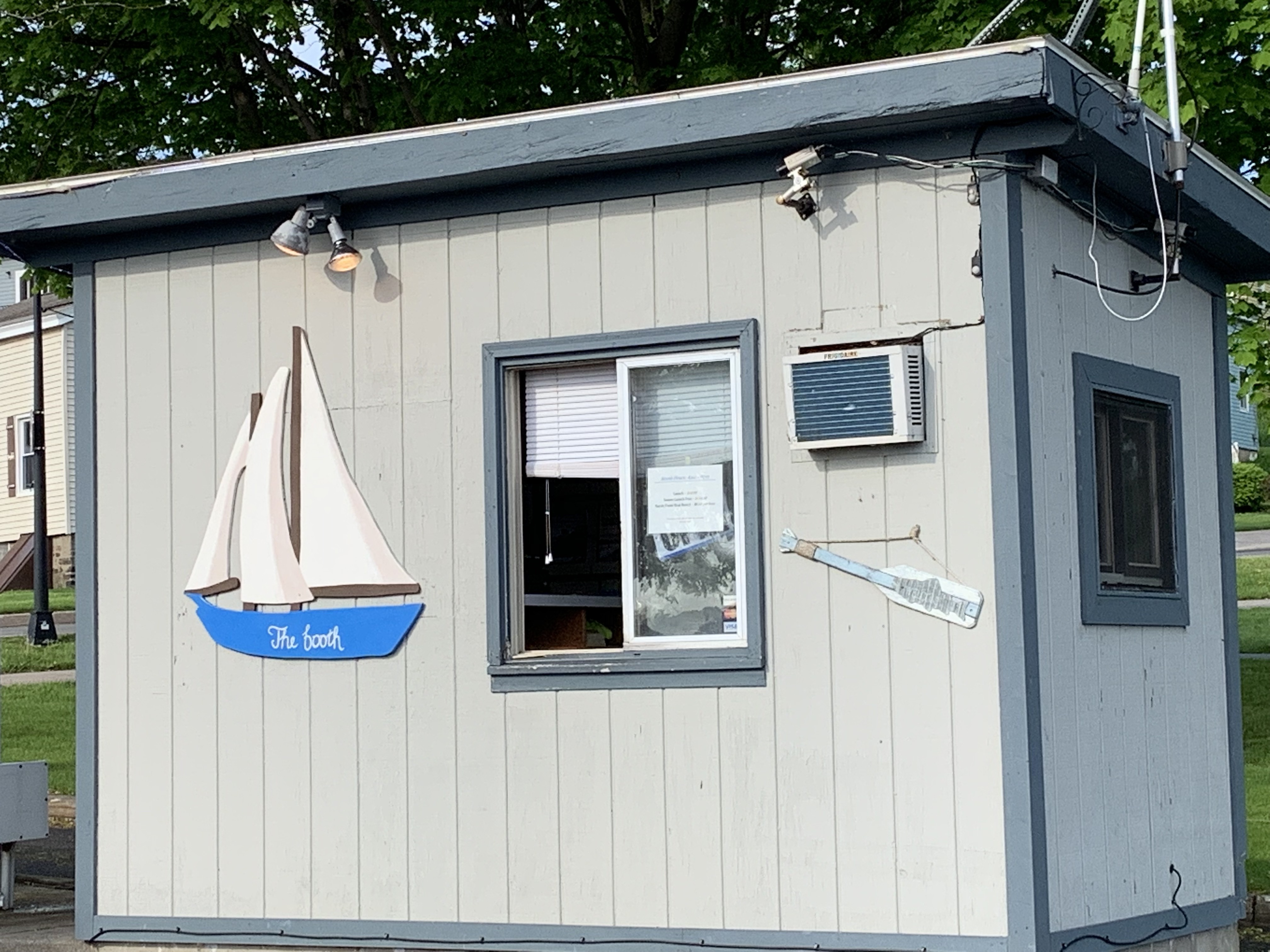 I arrived in Oswego, NY in mid-afternoon seeking Oswego International Marina. (I’ll post a picture of the OIM office!). There was no response to my hails so I docked in front of the Oswego Yacht Club. I was greeted by Chuck. Apparently, I was their first visitor of the season. Again, the people at the OYC were so friendly and accommodating. Thank you Chuck and to all the members. I put on a new mainsail halyard, spent the night and left early the next morning for Kingston.