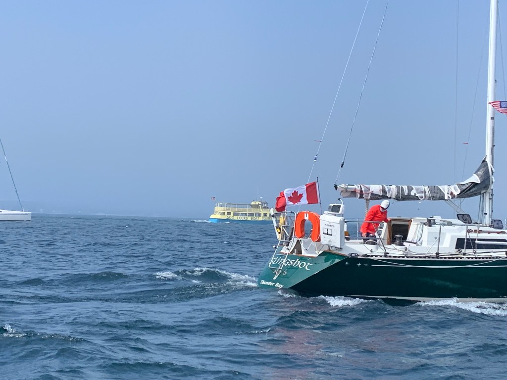 As boat after boat passed me on my way to the starting line I was feeling a sense of contentment. I was truly enjoying the beautiful sailing conditions on Lake Superior. I even felt a sense of accomplishment _ 89 days, over 2.500 miles, sailed all five Great Lakes, three circumnavigated. And throughout my journey, peoples’ responses had evolved when hearing of my attempt from polite acknowledgement and skepticism (Erie, Ontario) to a shaking of the head and awe (Michigan, Superior, North Channel and Georgian Bay).