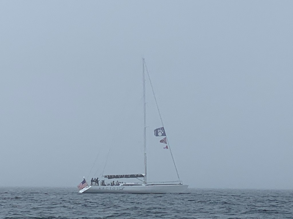 Eventually as I continued on my way to the starting line, all the race participants had passed me and were disappearing into a newly formed foggy mist. My feeling of contentment had shifted to one of urgency as the start line was still 3 ½ miles ahead somewhere in the fog! It was an hour to the starting line and I realized that I may not be on time! I sailed for speed and strained to maintain sight of the nearest vessel until it too had disappeared. I was now left to my GPS chart plotter and aggressively headed for Gros Cap Light.