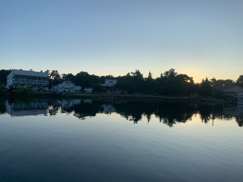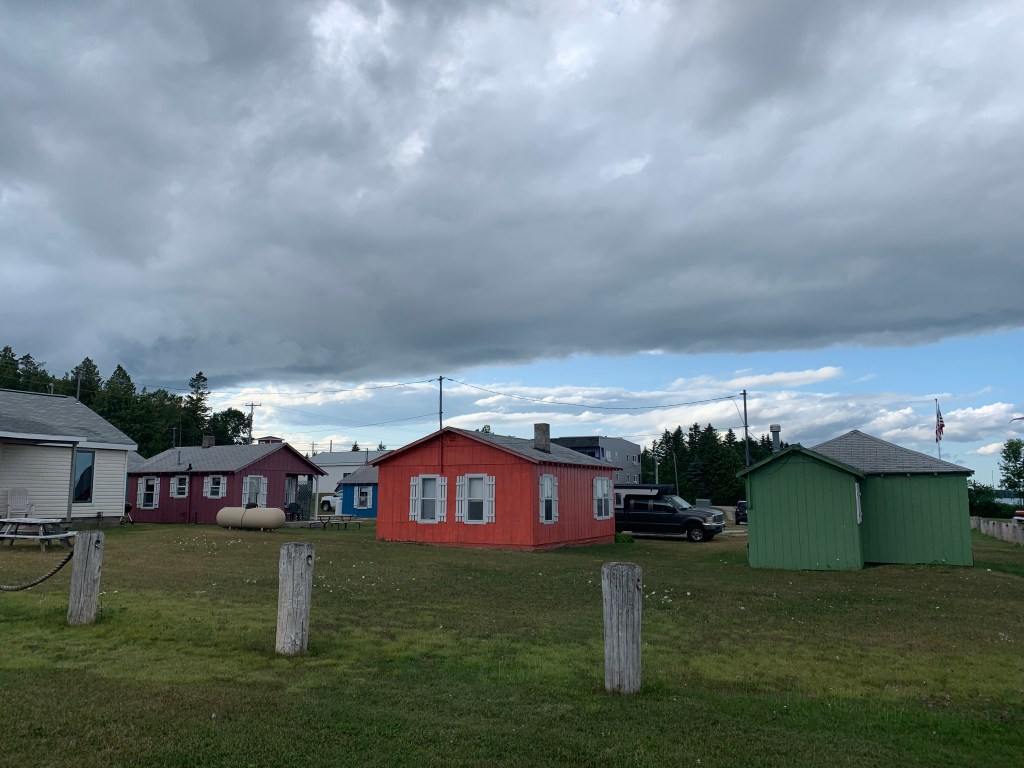 I was awakened by a a hail from Dan Pavlats’ niece and nephew who were so kind to come by and wish me good luck. Dan is a member of GLSS and has been a great mentor during my journey. He had mentioned that he had a niece and nephew who lived in the area and guided kayak trips in Lake Superior. He obviously called asking them to come by and say hello. It was a pleasant surprise for them to take the time and come by. After they left, I decided to tighten and re-tape my damaged bimini frame. I then checked my bilge and pumped out about a gallon of water. Throughout the trip, my bilge had not been working properly – either prematurely shutting off or suddenly engaging and requiring manual shut-off . (I would check out the bilge every few days throughout the trip just as a precaution.) It was now after 5 pm and I decided to walk to Antlers Restaurant for a hamburger and poutine. Antlers was about a mile from the marina. Throughout my trip, whenever I made dock I would look forward to walking. I can now relate to sailors out at sea for long periods wanting to stretch their legs during shore leave.