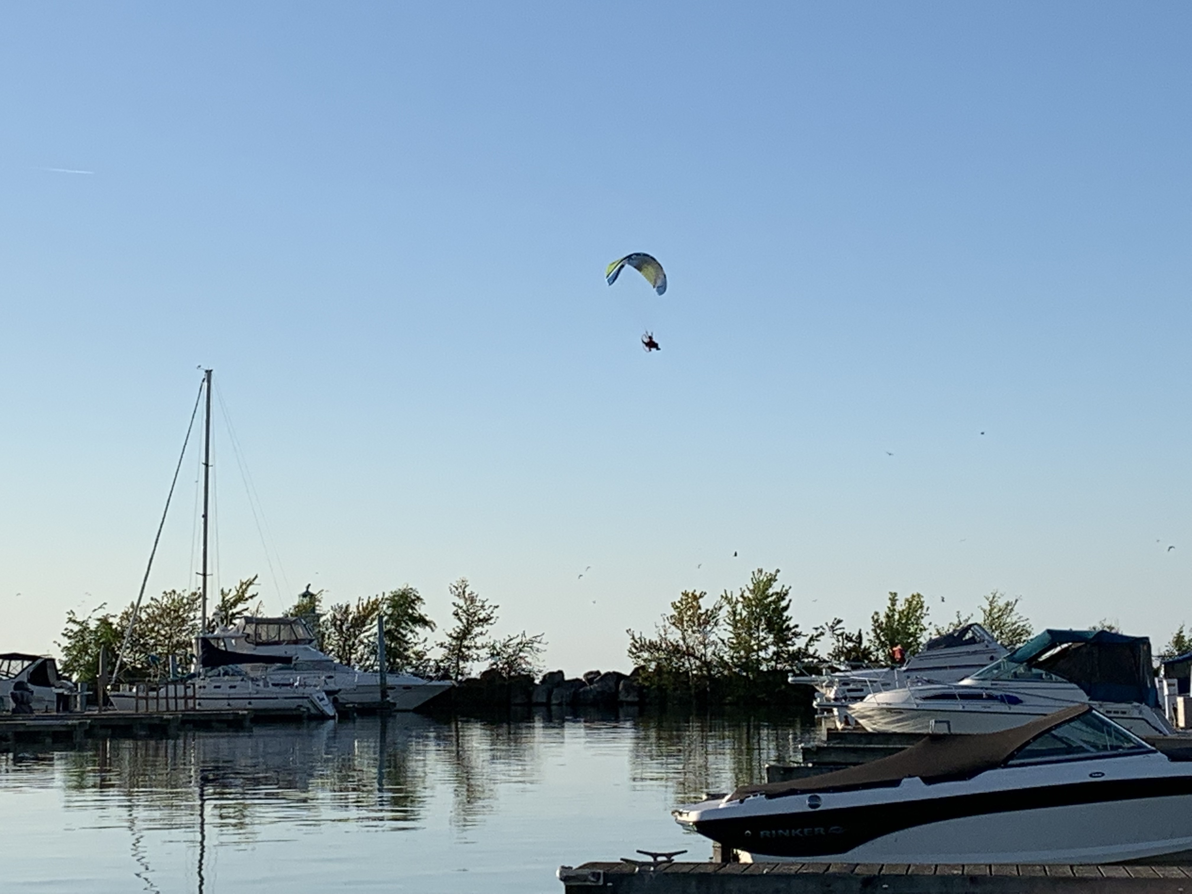 I reached Port Credit around 7 pm with the west winds building and the threat of thunderstorms.  I had travelled 42 miles today and I was too exhausted to eat.  I anchored and fell asleep immediately only to suddenly awake.  Something was not right.  I jumped up, quickly looked outside and found my anchor did not hold in the wind and I was about to collide into some very expensive yachts.  I started the engine, pulled up anchor and set off missing one yacht by about 5 feet!  Hearing my dependable diesel, the skipper of the yacht ran out of his cabin and hollered a few shouts of expletives.  I didn’t quite get what he said as I was busy but assumed they were expressions of joy that we didn’t contact.  I waved back to him and secured anchor behind a bluff to protect me from the wind.  After about an hour of constantly checking to ensure my anchor was holding, I again fell into a deep sleep.
