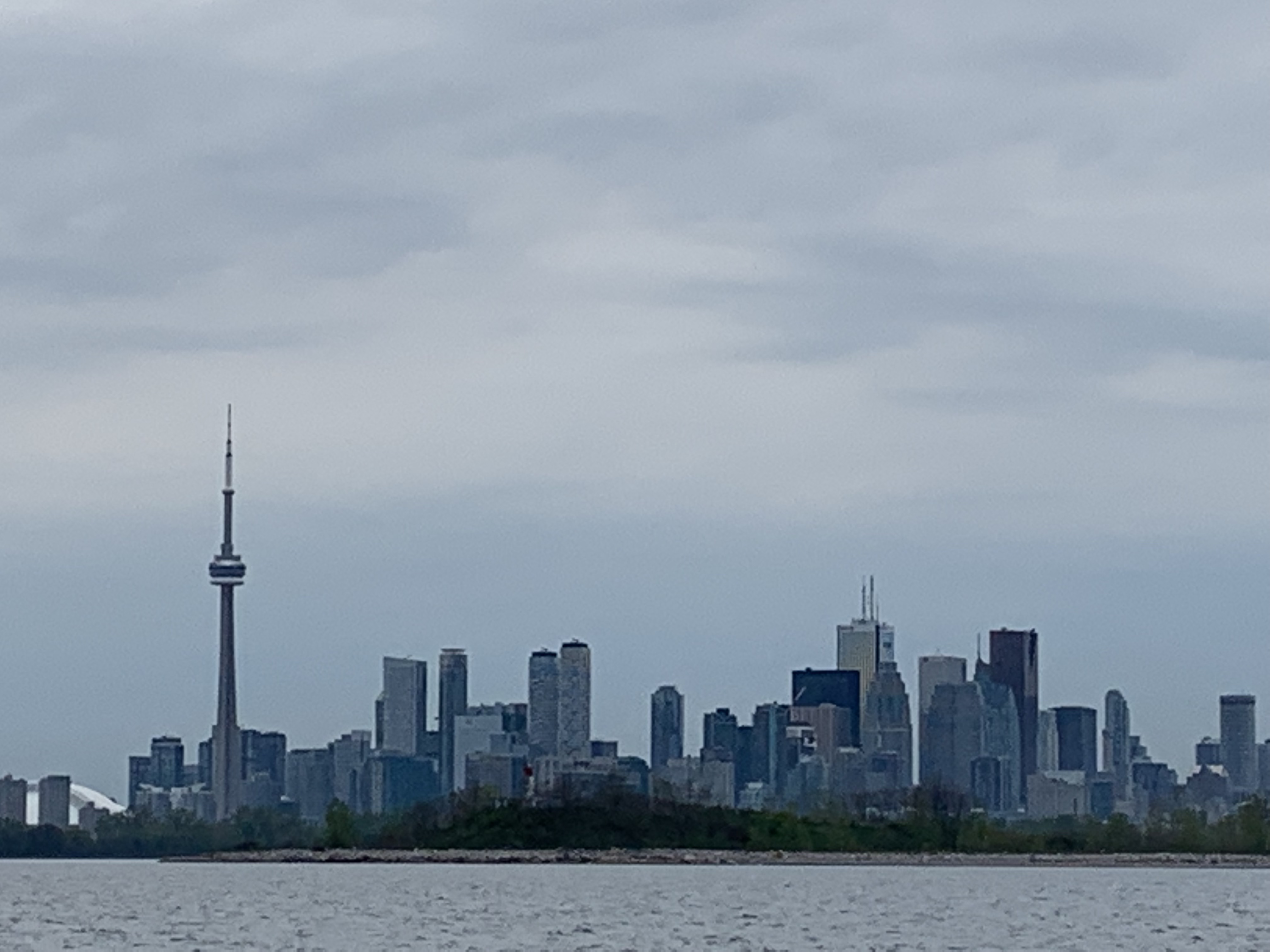 Tuesday, June 4th and Wednesday, June 5th:  Today, after too many decades I was going to sail by Toronto, my place of birth.  Due to the historically high water levels, marinas were closed so I wasn’t going to be able to walk the streets but I will get to see her skyline from the water.  The seas were flat, air again brisk (I could see my breath), the skies overcast and the threat of rain and growing winds.  That’s OK, I was going to see my home – can’t wait.